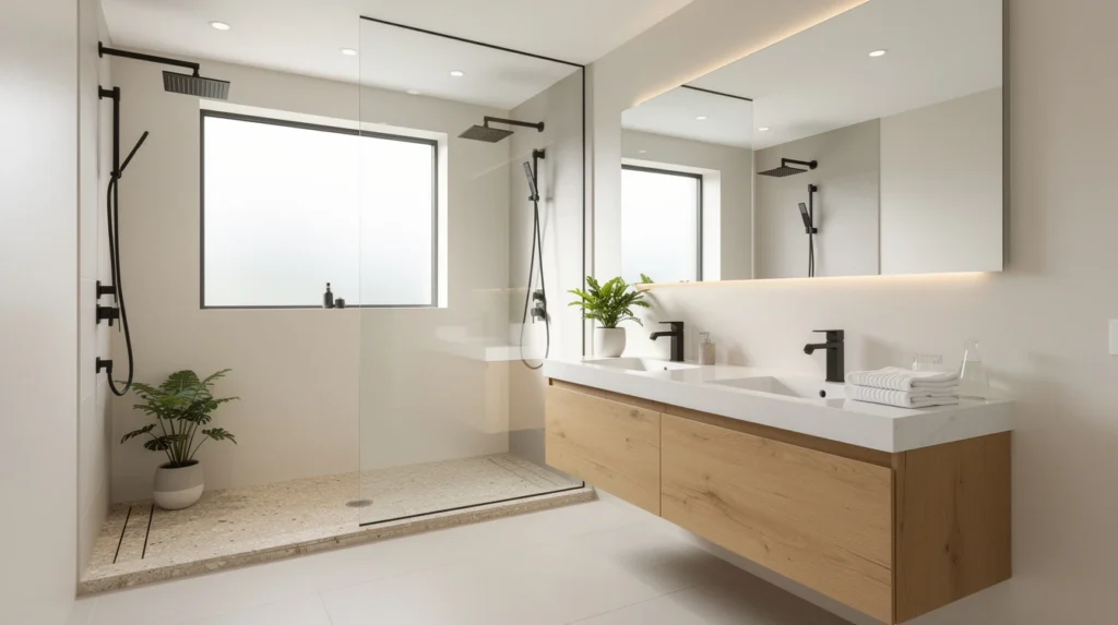 Intégrer des robinets électroniques ou temporisés, ainsi que des douches à l’italienne équipées de thermostats intelligents, permet non seulement de réduire le gaspillage mais aussi d’améliorer le confort et la sécurité d’utilisation. Autrement dit, la technologie s’allie ici à l’écologie pour transformer la salle de bain parentale en espace durable et performant.
